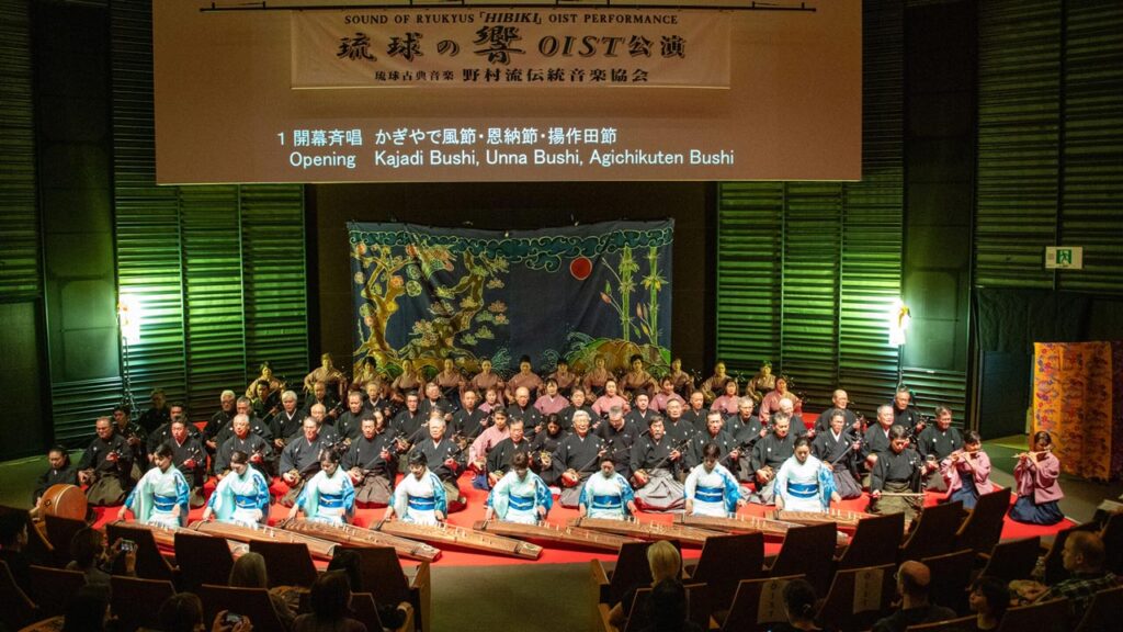 年に一度、恩納村の沖縄科学技術大学院大学(OIST)の講堂にて、地謡研修部の主催で公演を開いています。OIST 職員の方々との共演を始め、琉球舞踊や組踊を披露します。沖縄在住の外国人の方に琉球芸能を見ていただく機会にもなっています。