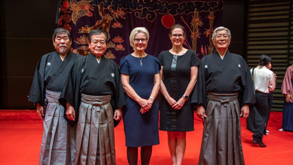師範・教師の会員を中心に、毎月1回の研修で琉球舞踊曲や組踊曲を学んでいます。これまでに海邦組踊シリーズ研修発表会を24 回、沖縄科学技術大学院大学OIST 公演を8 回開催(2025 年現在)するなど、舞台活動の経験を積みながら地謡の研鑽に励んでいます。